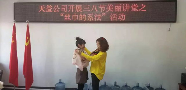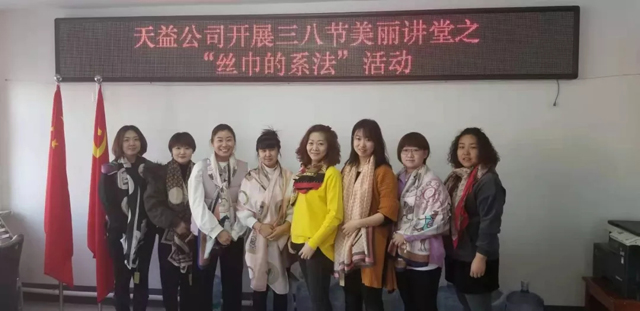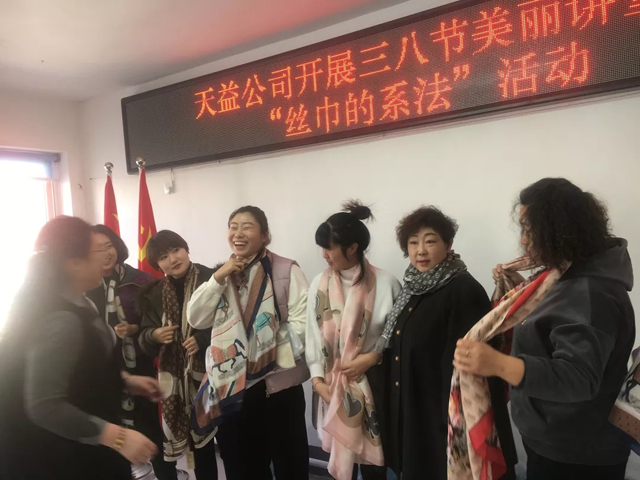 3月8日上午,天益公司舉辦了慶?!叭斯?jié),絲巾造型歡樂(lè)賽”活動(dòng),向偉大而無(wú)私奉獻(xiàn)的女性同志們致以節(jié)日的問(wèn)候。