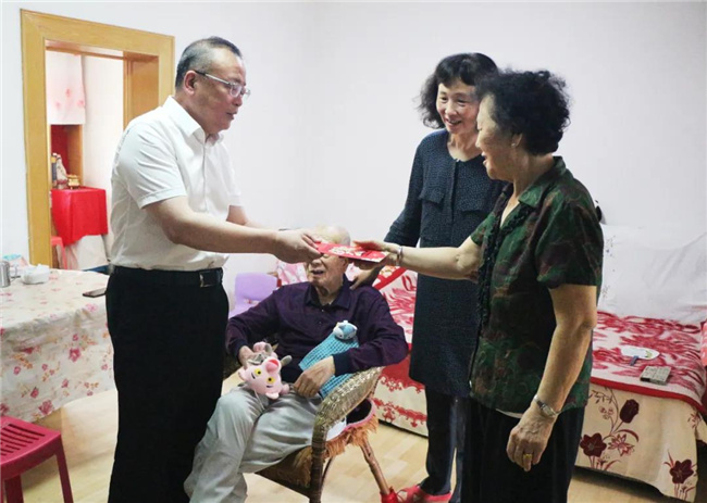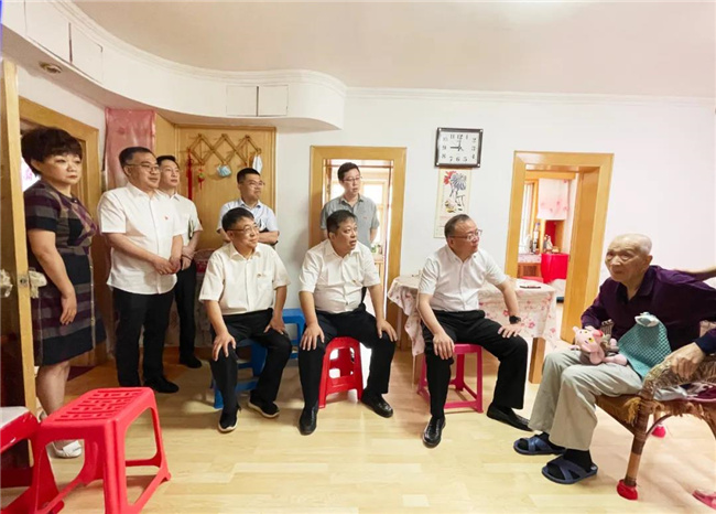 在李德春老人的家里,孫百如主任與他促膝而坐,一起回憶往昔歲月??吹嚼畹麓豪先司褊氰p、身體無恙,并得到了良好的照顧,孫百如高興地說:“馬上就是黨的百年華誕,這個(gè)時(shí)候我們最不能忘記的就是為黨和人民事業(yè)作出過積極貢獻(xiàn)的老黨員們?!睂O百如主任與來訪同事向李德春老人表達(dá)了深深的祝福,并代表市國資委送去了深切關(guān)懷和慰問金,祝愿老人健康長壽、闔家幸福。