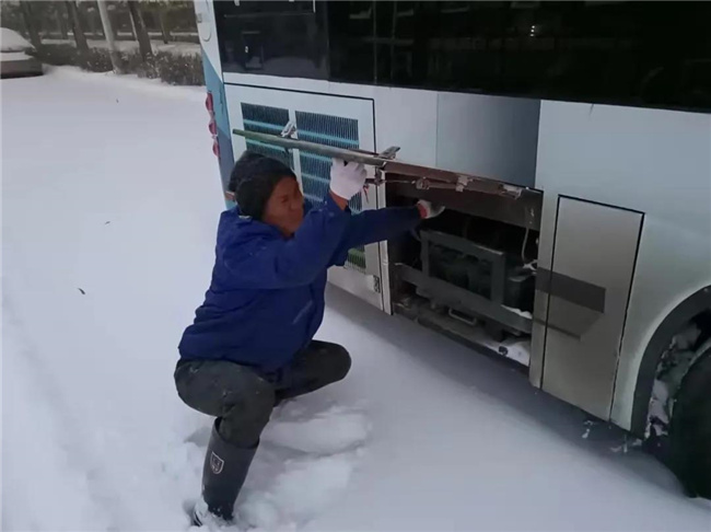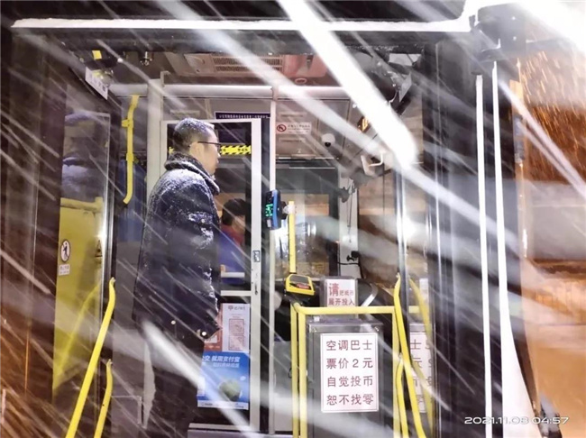 凌晨4點多,第一班車的駕駛員就已經(jīng)提前到崗,清掃積雪,預(yù)熱車輛...