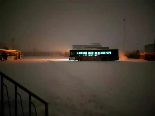 迎著風(fēng)雪,首班車順利發(fā)車