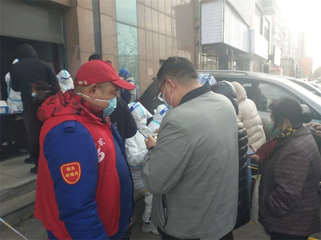 防控疫情哪里需要黨員干部,黨員干部就戰(zhàn)斗在哪里。核酸檢測是防控疫情的必要手段。3月21日早上,通利公司黨委書記、經(jīng)理黃丹準(zhǔn)備到單位上班,到小區(qū)門口發(fā)現(xiàn),小區(qū)被封了,一打聽得知,小區(qū)半夜3點(diǎn)被管控封閉。得知當(dāng)天小區(qū)做全員核酸,便通過微信向社區(qū)請戰(zhàn),對方負(fù)責(zé)同志告訴他非常需要志愿者,但得先做雙彩后再決定是否用。在等待期間,黃丹聯(lián)系了同小區(qū)的集團(tuán)同事:黃河公司的干部陳浩,以及陳浩愛人,集團(tuán)機(jī)關(guān)的張彤馨。張彤馨聽說后高興得跳了起來,立馬準(zhǔn)備上“戰(zhàn)場”。