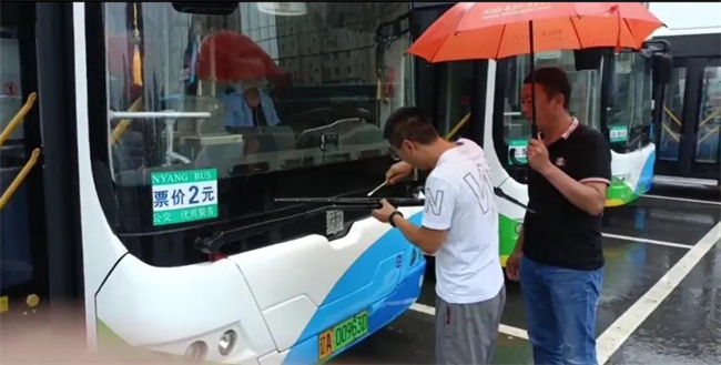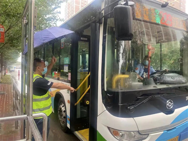鑫暢公司車隊長叮囑每名駕駛員,樹立安全意識,雨天慢行,強調進站緩行、防止濺水、安全運營。