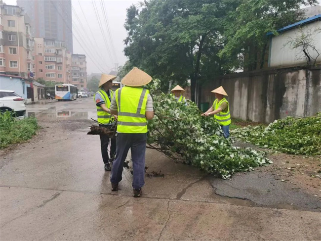 通利公司部分場區(qū)站務設施被暴雨損壞,工作人員及時修補、清理。