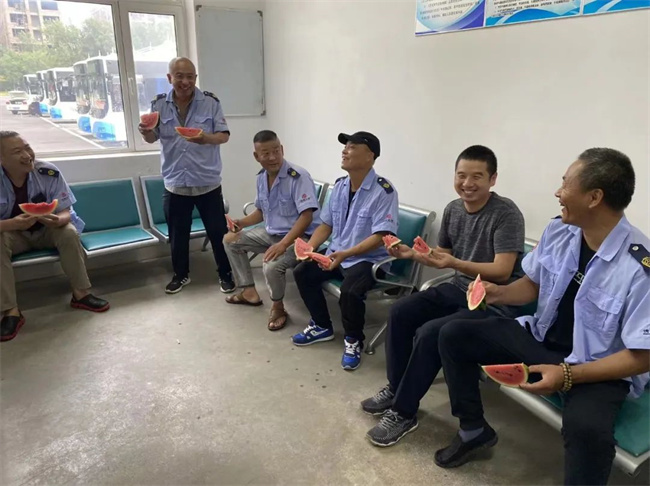 沈蘇公司各車隊管理人員為堅守在高溫一線的職工送去清涼的西瓜。駕駛員們紛紛表示,這些西瓜不僅解了暑,也甜了心,感動之余也讓大家更有干勁,他們將積極克服高溫挑戰(zhàn),更好地保障市民安全出行。