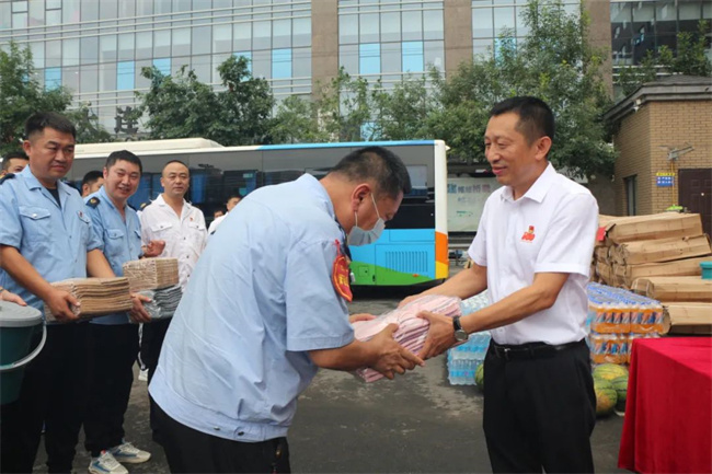 黨委書記、董事長(zhǎng)孟令軍代表集團(tuán)領(lǐng)導(dǎo)班子向所有在高溫下奮戰(zhàn)和堅(jiān)守的客運(yùn)一線職工表示感謝,并囑咐大家在為廣大市民提供服務(wù)的同時(shí),要做好自身防暑降溫,合理安排好調(diào)休時(shí)間,保證身體健康。要求各單位黨政工團(tuán)組織切實(shí)將關(guān)心關(guān)愛職工落到實(shí)處,擴(kuò)大活動(dòng)的覆蓋面,確保一線職工的身心健康,全力保障市民平安出行。
