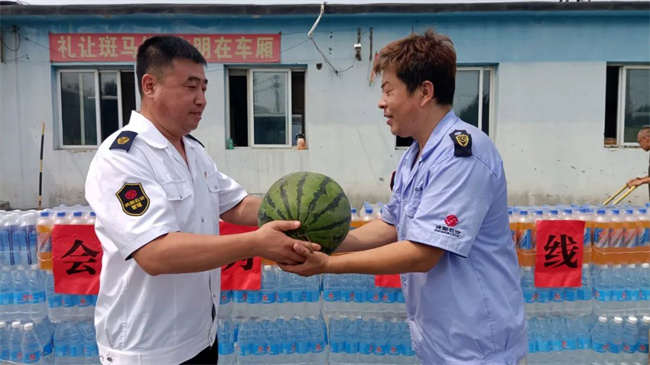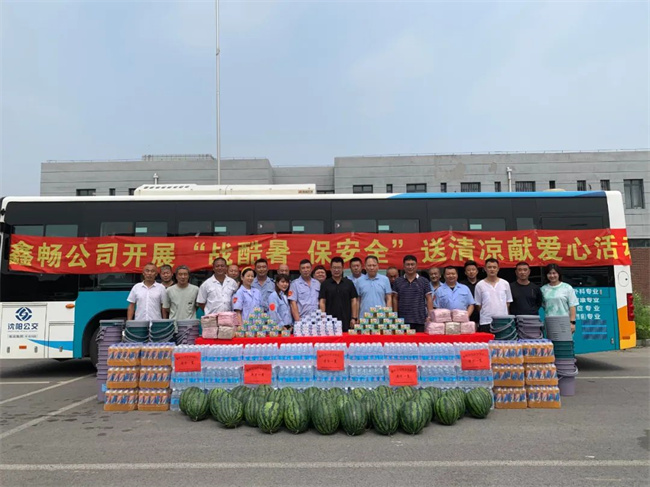 8月4日上午,鑫暢公司開展了“戰(zhàn)酷暑、保安全”送清涼獻(xiàn)愛心活動(dòng),為機(jī)關(guān)和各車隊(duì)發(fā)放礦泉水、香皂、毛巾、西瓜等防暑降溫用品,為一線職工遞上絲絲情懷。