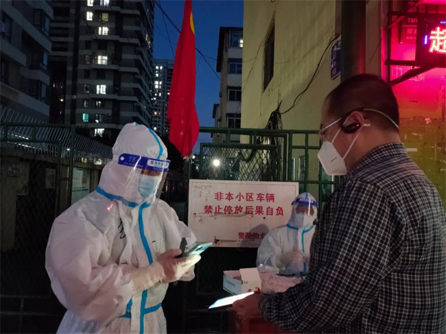 王眾介紹,轄區(qū)內(nèi)有一位外國友人身體不好,志愿者上門進行核酸檢測時,這位老外深受感動,一直在說“Thank you!”