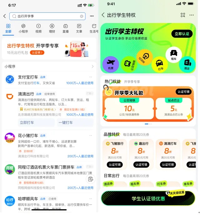 只需打開支付寶搜【出行開學(xué)季】