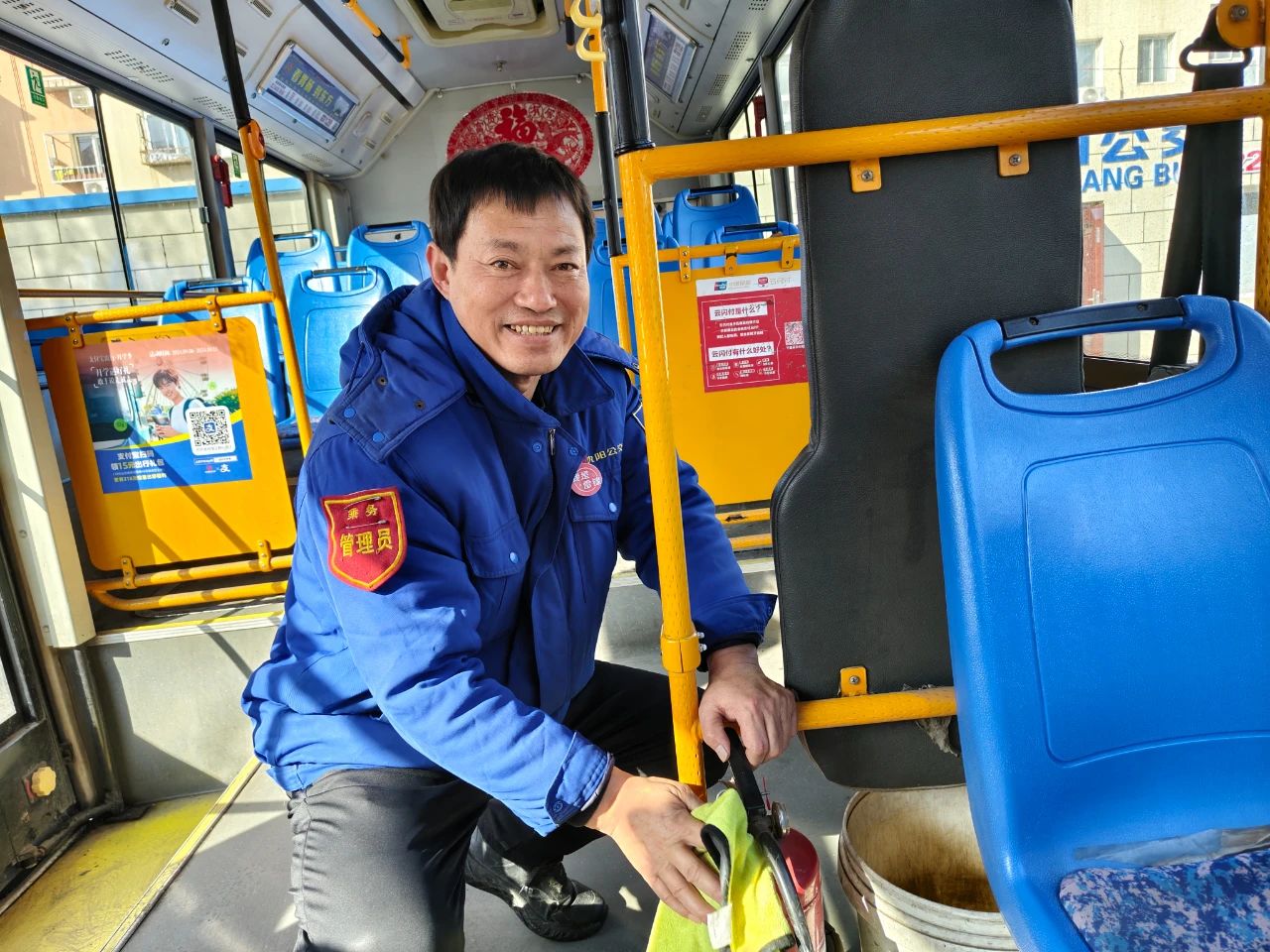 春節(jié)過(guò)后,沈陽(yáng)迎來(lái)返程返校高峰,加之線(xiàn)路終點(diǎn)站位于沈陽(yáng)火車(chē)站,客流量大幅增加。為了給返程市民、返沈?qū)W子以及來(lái)沈游玩游客提供便利,車(chē)隊(duì)按照“微笑服務(wù) 情暖沈陽(yáng)”的服務(wù)標(biāo)準(zhǔn),認(rèn)真打掃車(chē)輛衛(wèi)生,駕駛員更是以嶄新的精神面貌投入到工作中,臉上洋溢著熱情的笑容。