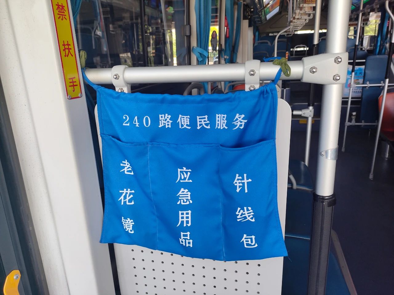 在240路的乘客中,老年乘客占比約55%,為提供更貼心、細(xì)心的服務(wù),車廂內(nèi)配備了一系列便民設(shè)施:急救藥品、口罩、老花鏡、針線以備不時(shí)之需;無(wú)障礙設(shè)施方便特殊乘客;愛心座椅專為老人、孕婦、兒童等群體設(shè)置;“愛心雨傘”保障雨天出行無(wú)憂。這些設(shè)施充分體現(xiàn)了以乘客為中心的服務(wù)理念。