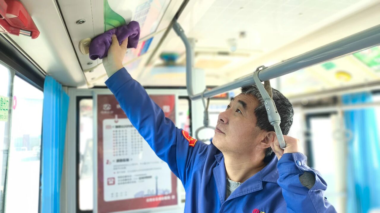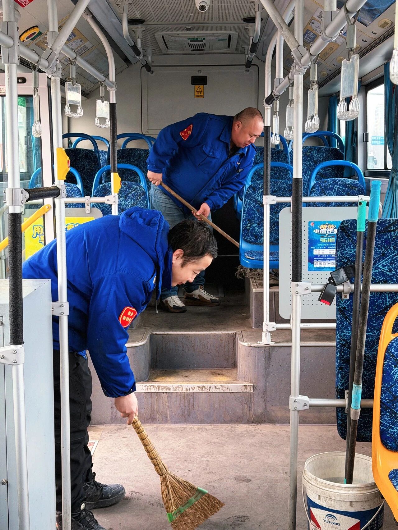 本次行動嚴格對標“四無六凈”衛(wèi)生標準,對車輛進行全方位、無死角的深度清潔。駕駛員們利用行車間隙與班后時間,不畏嚴寒,細致擦拭車身,沖洗輪胎輪轂;在車廂內,他們俯身清掃地板與踏板,仔細清理座椅縫隙,反復擦拭扶手、欄桿與窗沿。不放過每一個角落,不遺漏每一處污漬,切實做到車身光潔如新、車廂窗明幾凈、設施完好整潔,以實際行動擦亮城市流動的“服務窗口”。
