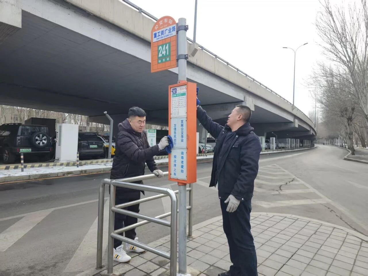 公交站臺不僅是市民出行的“避風(fēng)港”,更是展示城市文明的“第一窗口”?;顒又?,各支部志愿者們拿起掃帚、抹布、鏟刀等工具,深入車隊周邊站區(qū)開展清潔行動。他們不放過任何一個細(xì)節(jié)——彎腰拾起嵌在地磚縫隙中的煙頭,踮腳擦拭候車亭上的積塵。經(jīng)過一番“地毯式”的清掃,候車亭煥然一新,為過往市民營造出干凈、舒心的候車環(huán)境,讓每一次等候都更有溫度。