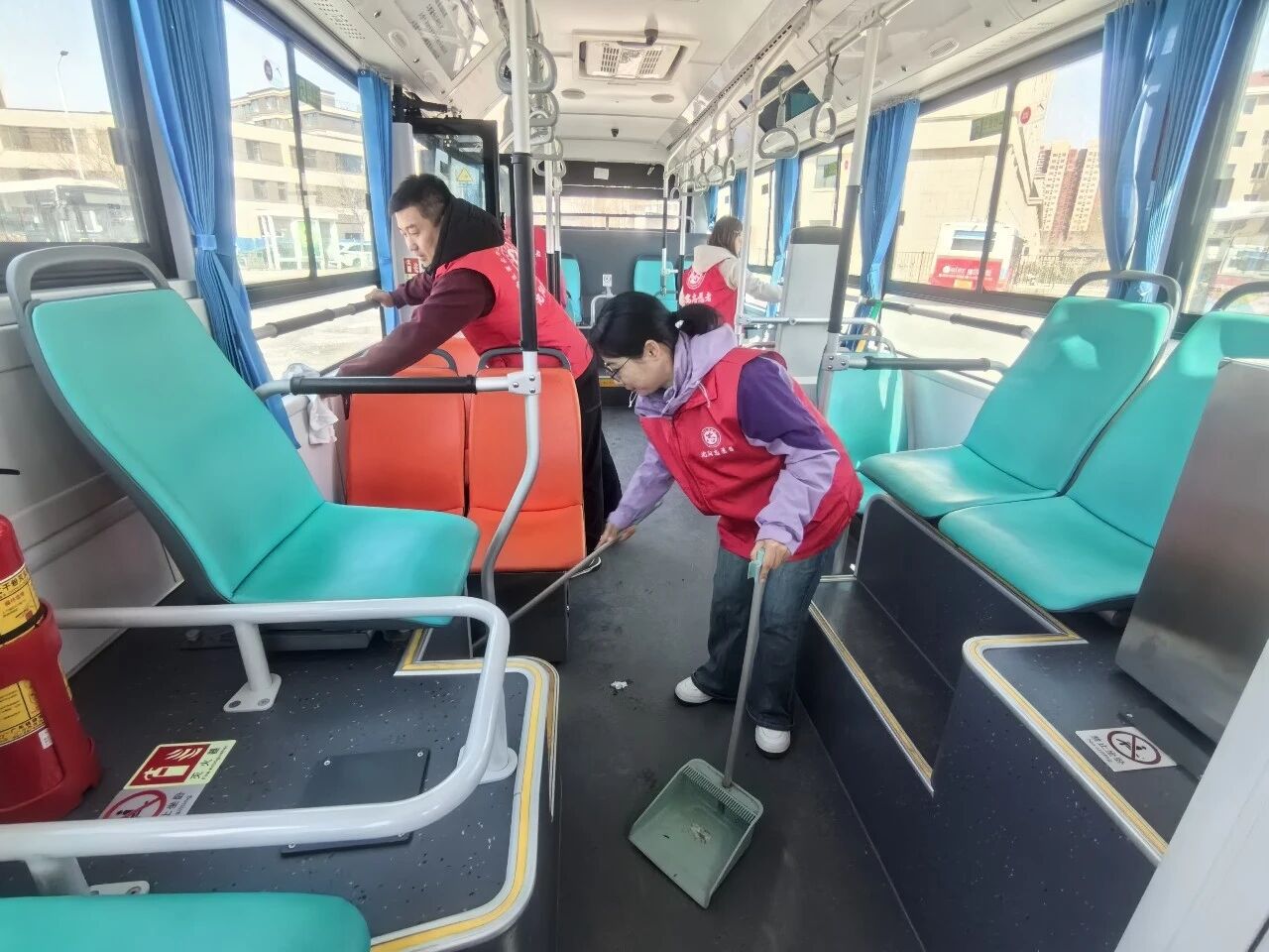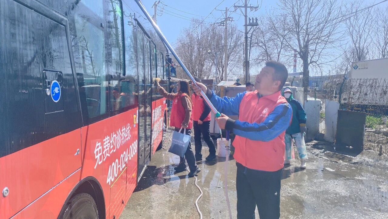 通運(yùn)公司黨員與社區(qū)志愿者齊聚261路終點(diǎn)站,手持掃帚、鐵鍬、抹布等工具,分工協(xié)作、默契配合。有的蹲在墻角,仔細(xì)清理越冬積存的枯枝落葉和掩埋深處的塑料垃圾;有的揮動(dòng)鐵鍬,鏟除堆積已久的雜物與頑固污漬;有的登上公交車,對(duì)車身、車窗、座椅進(jìn)行全方位擦拭清潔。經(jīng)過(guò)一個(gè)小時(shí)的緊張奮戰(zhàn),場(chǎng)站角落的衛(wèi)生死角被徹底清理,公交車內(nèi)外窗明幾凈,原本略顯雜亂的場(chǎng)站面貌煥然一新,為乘客營(yíng)造出更加舒心、安心的出行體驗(yàn)。