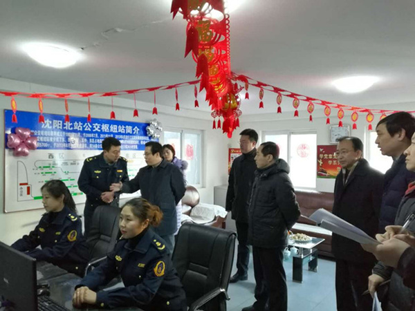 1月27日,大年三十上午,整座沈陽城都浸潤在濃濃的年味之中,客運集團北站南廣場公交樞紐站張燈結(jié)彩,到處洋溢著節(jié)日的歡樂。市長姜有為帶領(lǐng)市交通局局長李宏德,客運集團總經(jīng)理徐健、黨委書記劉文清、副總經(jīng)理周宇航等相關(guān)部門負責人,檢查我市2017年春運保障工作,并對節(jié)日期間仍堅守工作崗位、方便市民出行的公交駕駛員表示親切的慰問和感謝。