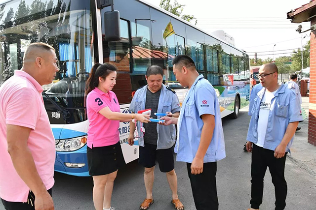 今年,我們又迎來了今年的高溫季節(jié),為做好防暑降溫工作,確保一線職工平安度夏,集團(tuán)機關(guān)開展了“送清涼”活動,集團(tuán)公司領(lǐng)導(dǎo)班子、集團(tuán)公司機關(guān)各部室負(fù)責(zé)人都積極的參與到了本次活動中,為奮戰(zhàn)在一線的駕駛員和職工送去了絲絲涼意,獻(xiàn)上了一份誠摯的關(guān)懷。