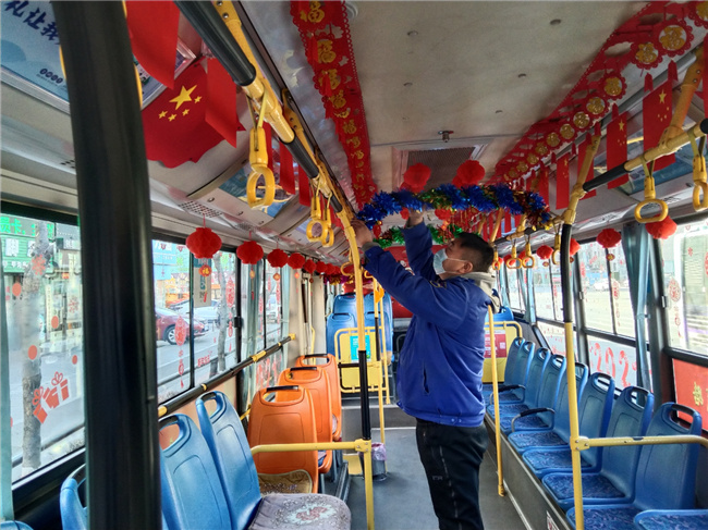 在共產(chǎn)黨員先鋒崗丁亞南駕駛的車上,紅色紙燈籠、藍(lán)色綠色拉花、福字串、窗貼,寫著牛年大吉的彩板畫一應(yīng)俱全,節(jié)日氣氛十分濃厚,車廂里不時(shí)傳來乘客們的贊揚(yáng)聲和感謝聲。提到裝扮車廂的初衷,他表示:“這不是疫情嘛,疫情本來大伙心情都比較沉重,我就弄了點(diǎn)兒新年的氣氛,讓大家放松放松心情。我是一名共產(chǎn)黨員,為乘客服好務(wù)是我的宗旨,疫情期間,更需要我們沖鋒在前,迎難而上,為大家樹立好黨員的形象。”