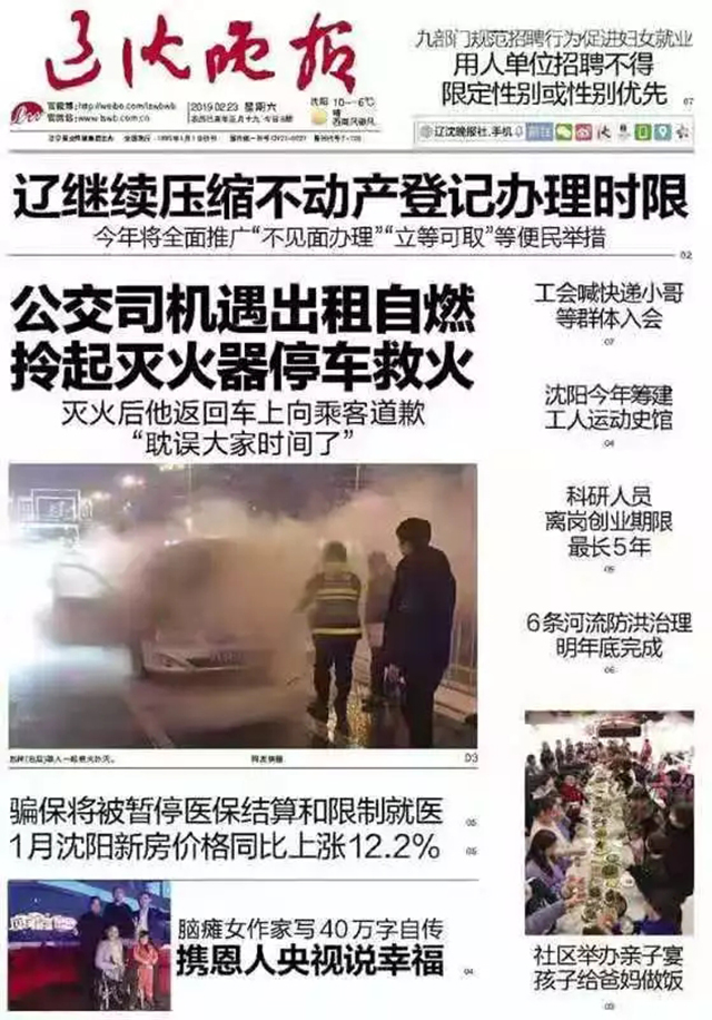 遼沈晚報(bào)得知此事之后對當(dāng)事人和車隊(duì)進(jìn)行了采訪宣傳報(bào)道?!翱赡芫褪浅鲎廛嚲€路老化引起的,我車上的滅火器容量是 4 公斤的,比私家車上的滅火器容量大,上去一噴就見效果。公司每年都組織兩次消防實(shí)戰(zhàn)演練,所以面對自燃等突發(fā)狀況,有信心對付。”趙林對記者說道。